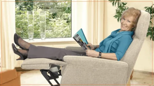 Für mehr Sitzkomfort können Sie dem Sessel eine Lordosenstütze – wahlweise mechanisch oder elektrisch – hinzufügen. Für ältere Menschen empfiehlt sich die Option „Aufstehhilfe“. Diese ist in der Standardausführung oder für schwergewichtige Personen als „Heavy-Weight“ bis 180 kg Körpergewicht erhältlich.
